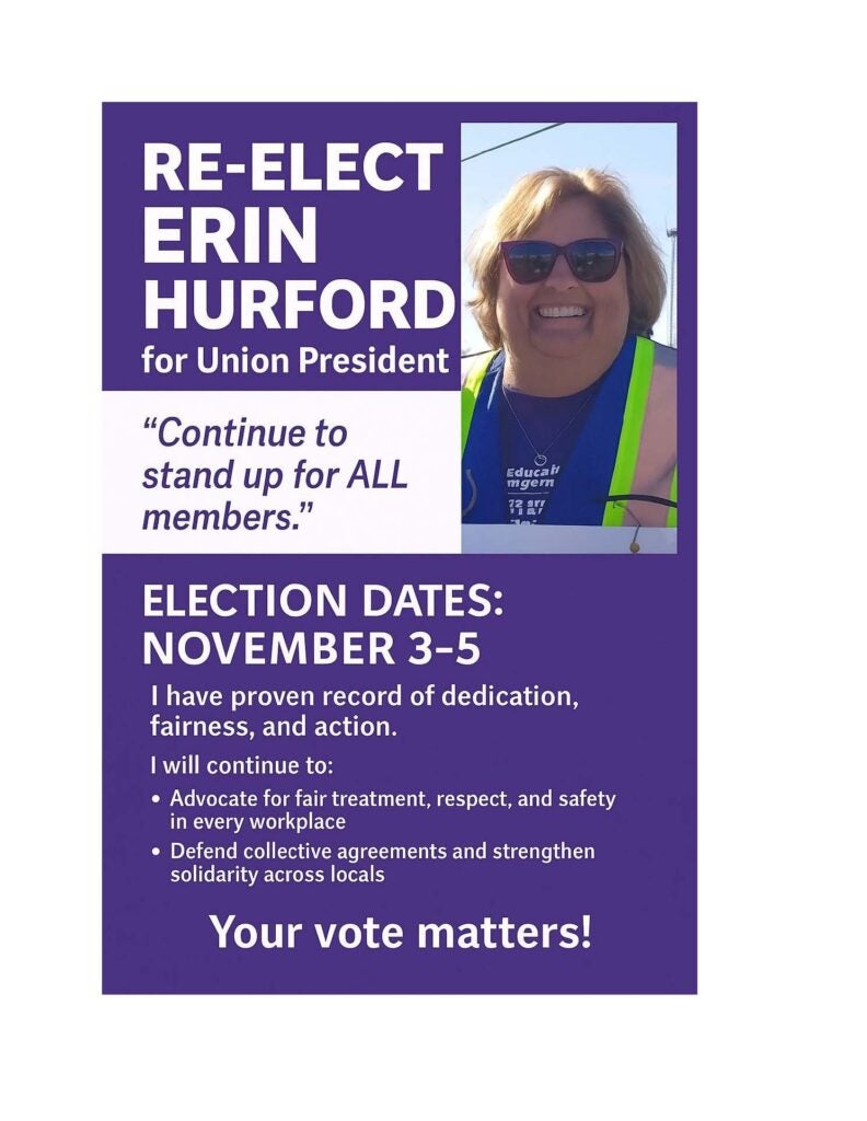 We have a vote coming up to elect the President and Representative – Health & Safety. The vote will run from Monday November 3rd – Wednesday November 5th 11 pm.