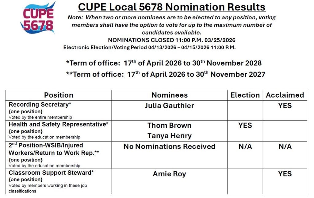 Any additions to the agenda must reach the CUPE Office no later than Friday, April 3rd, 2026.