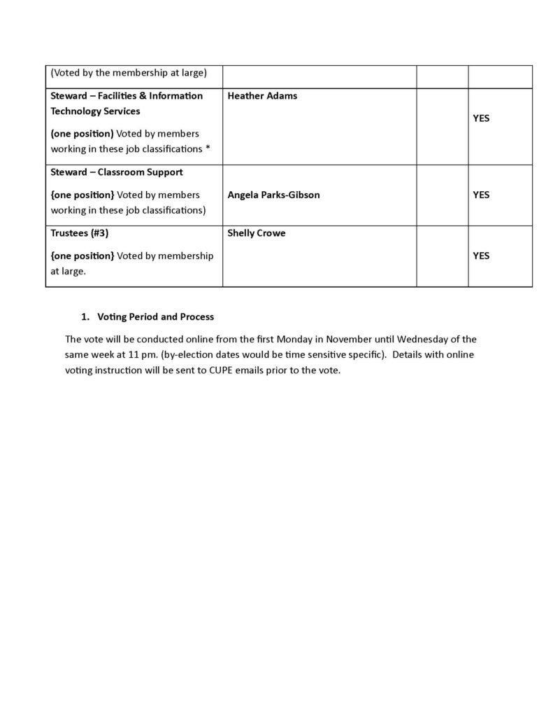 Voting will be by CUPE email and you must be a Member in Good Standing.